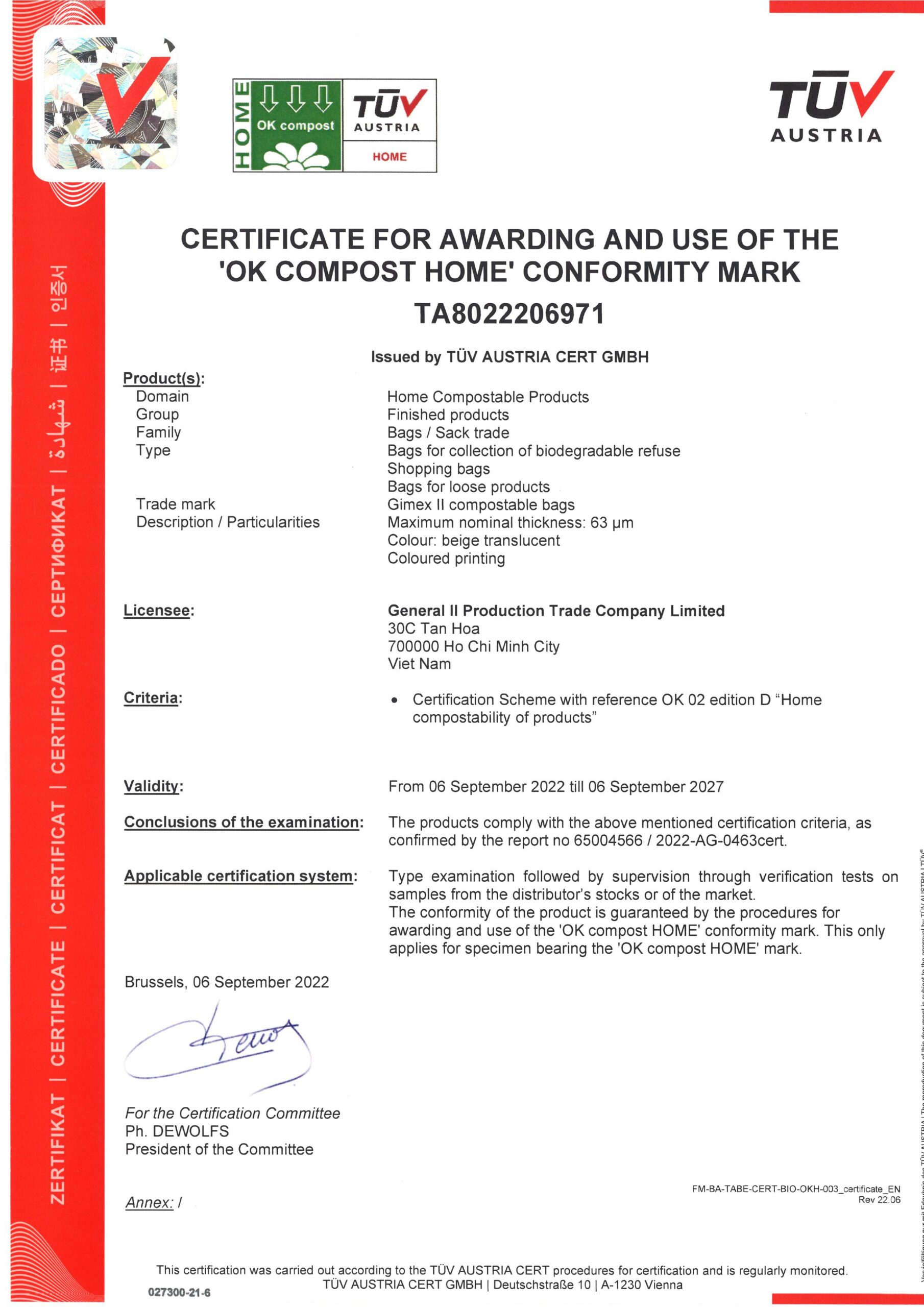 GIMEX II là doanh nghiệp sản xuất và cung cấp bao bì phân hủy sinh học, bao bì thân thiện môi trường, đáp ứng xu hướng tiêu dùng xanh và các tiêu chuẩn quốc tế về an toàn môi trường.